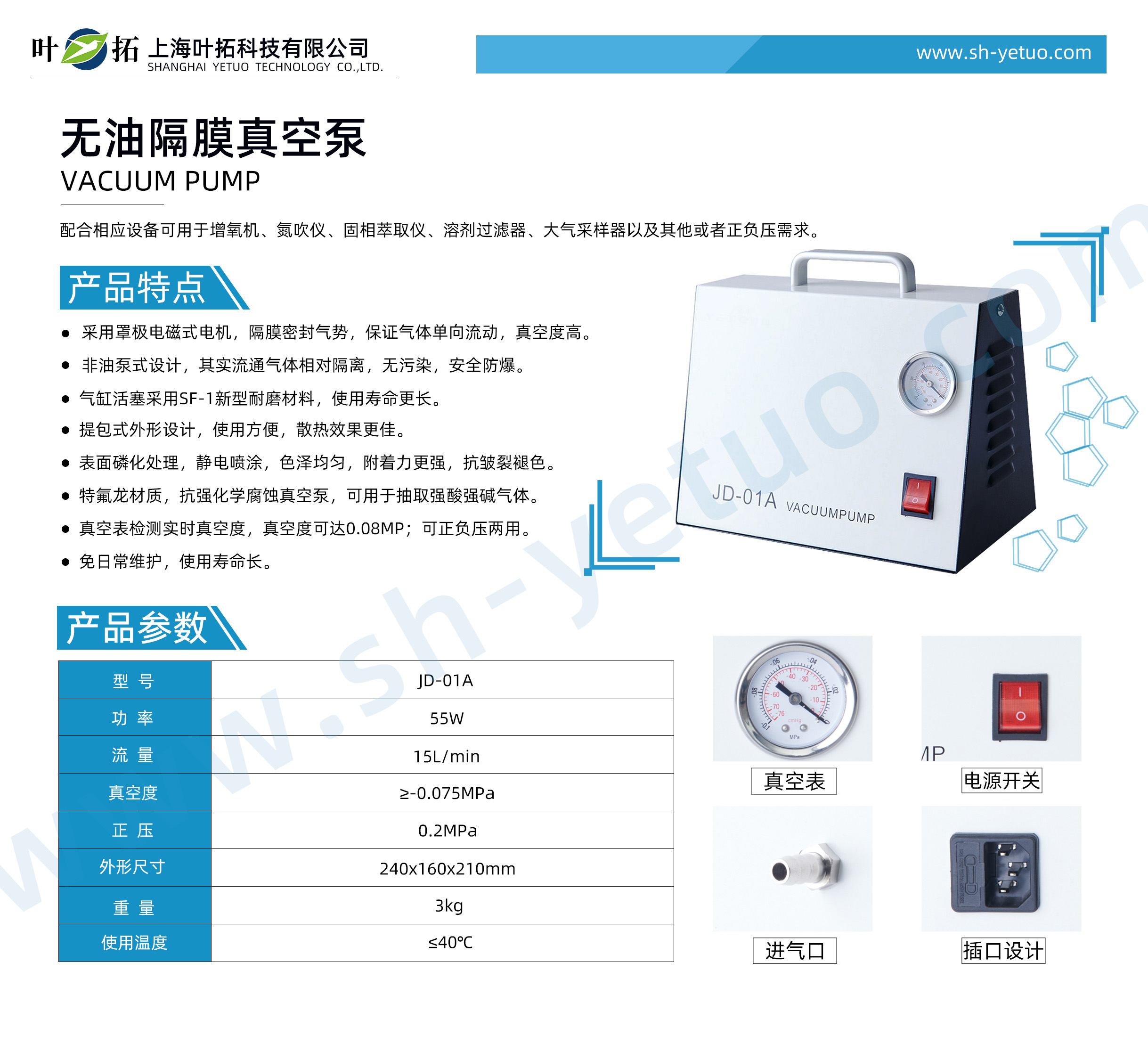 葉拓 JD-01A 無油真空泵產(chǎn)品特點(diǎn):