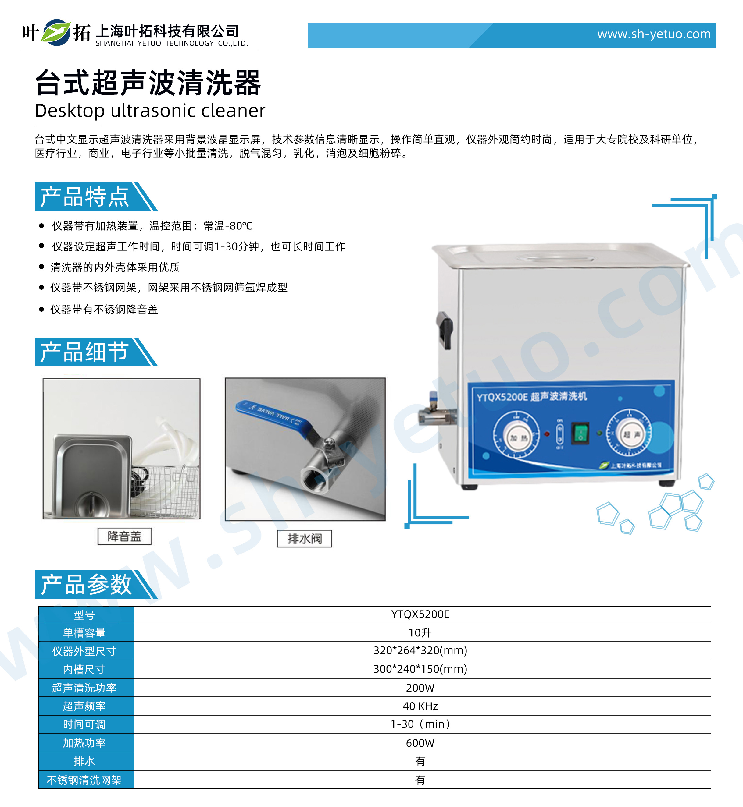 葉拓 YTQX5200E 臺式超聲波清洗機(jī)詳細(xì)參數(shù)