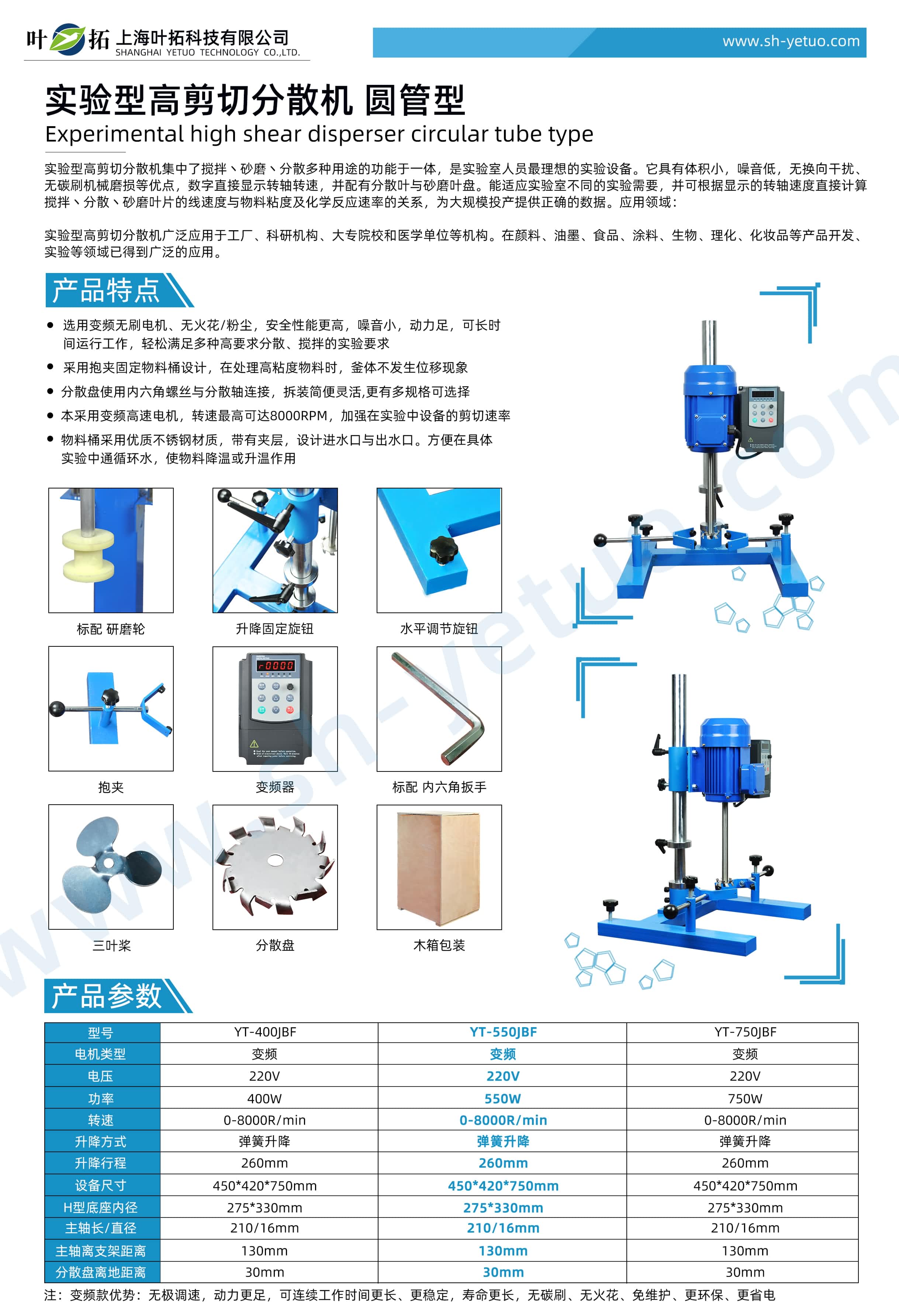 葉拓 YT-550JBF 實驗型圓管分散機詳細參數