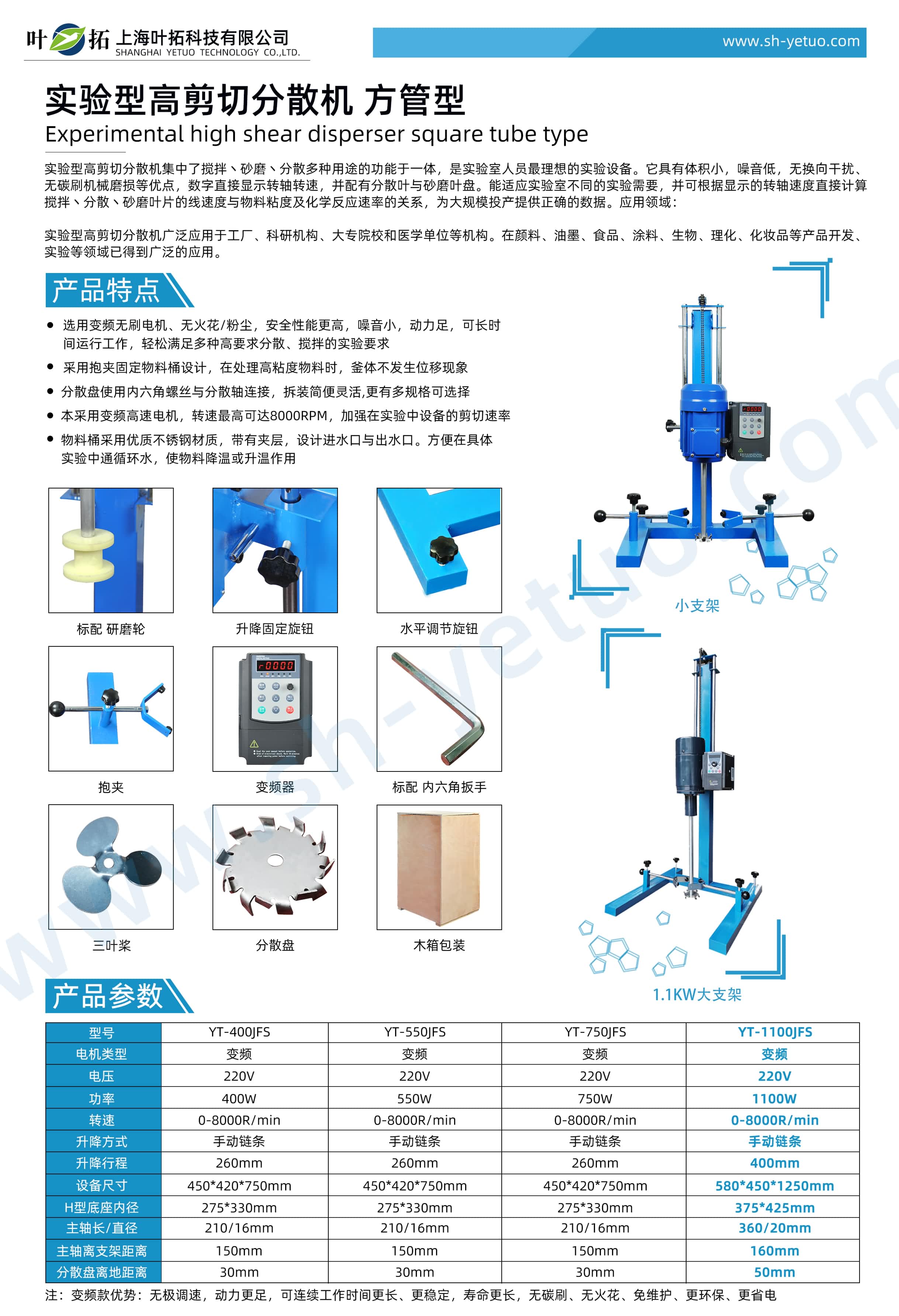 葉拓 YT-1100JFS 實驗型方管分散機詳細參數