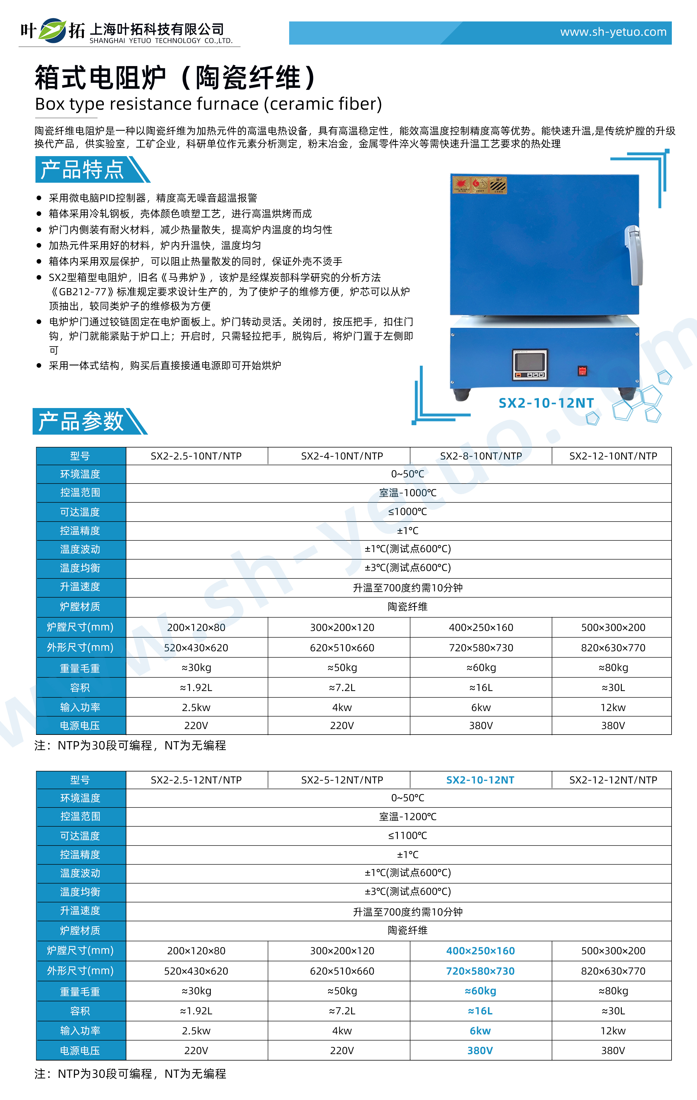 葉拓 SX2-10-12NT 陶瓷纖維箱式電阻爐詳細參數