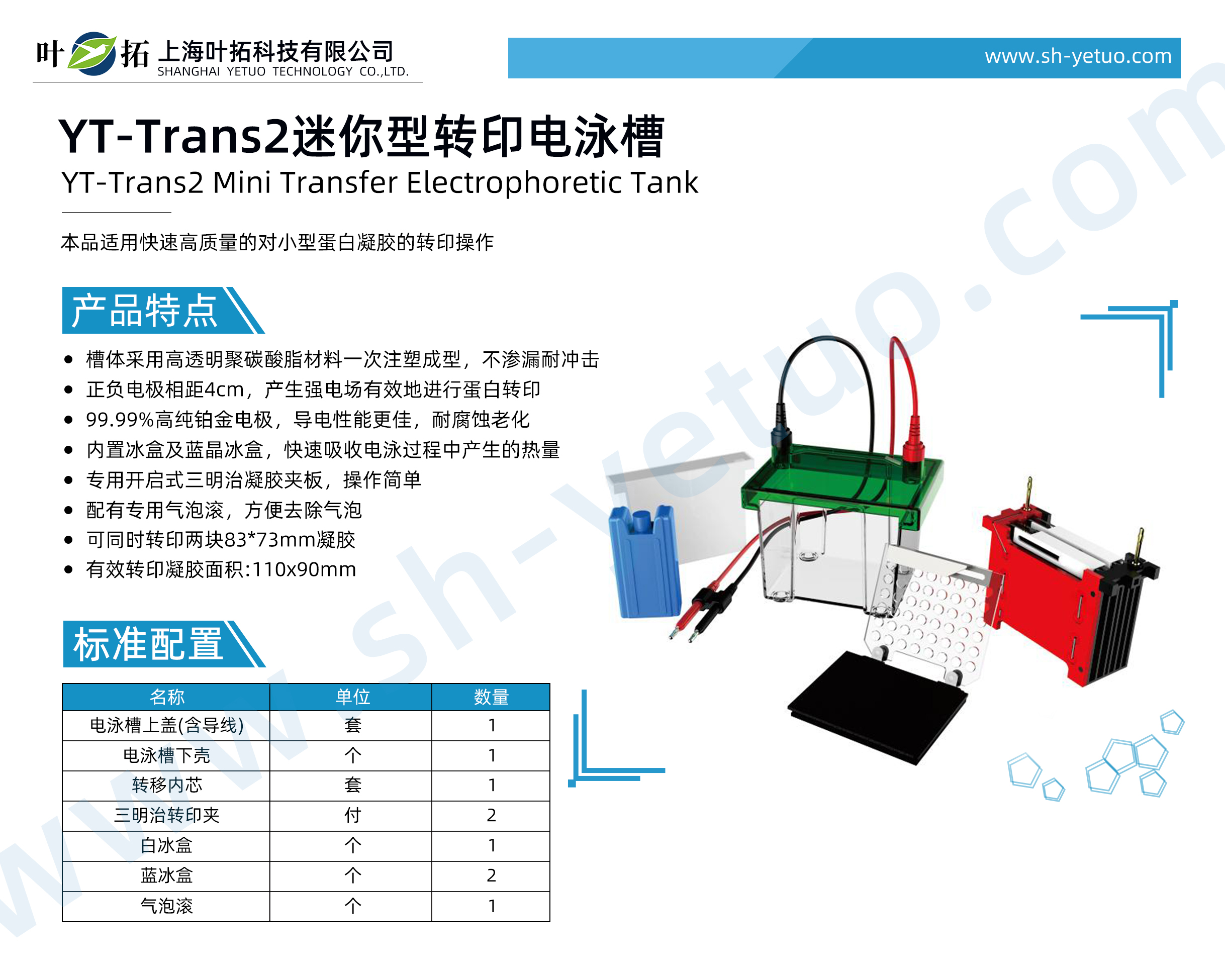 葉拓 YT-Trans2 迷你型轉印電泳槽標準配置