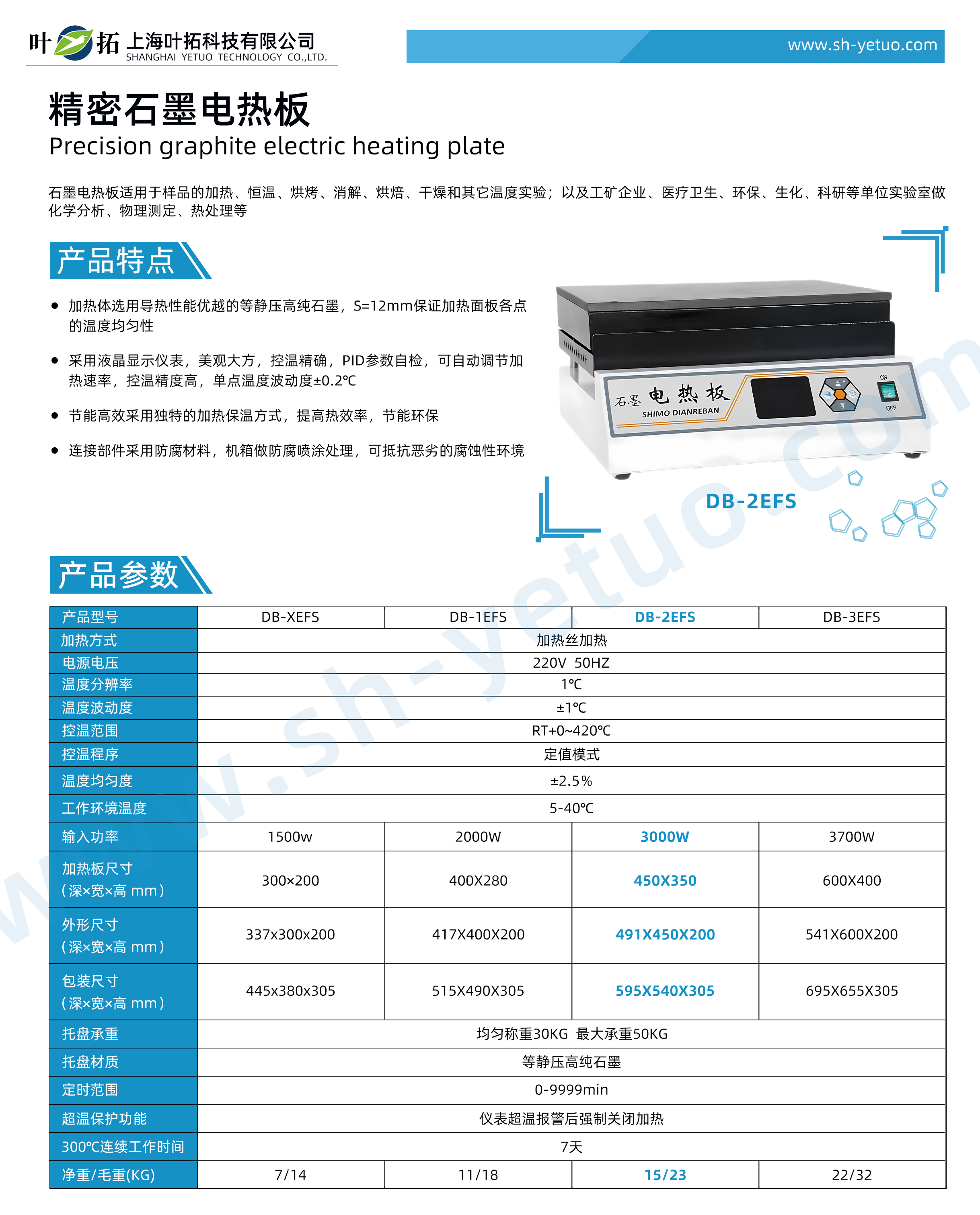 葉拓 DB-2EFS 精密石墨電熱板詳細參數