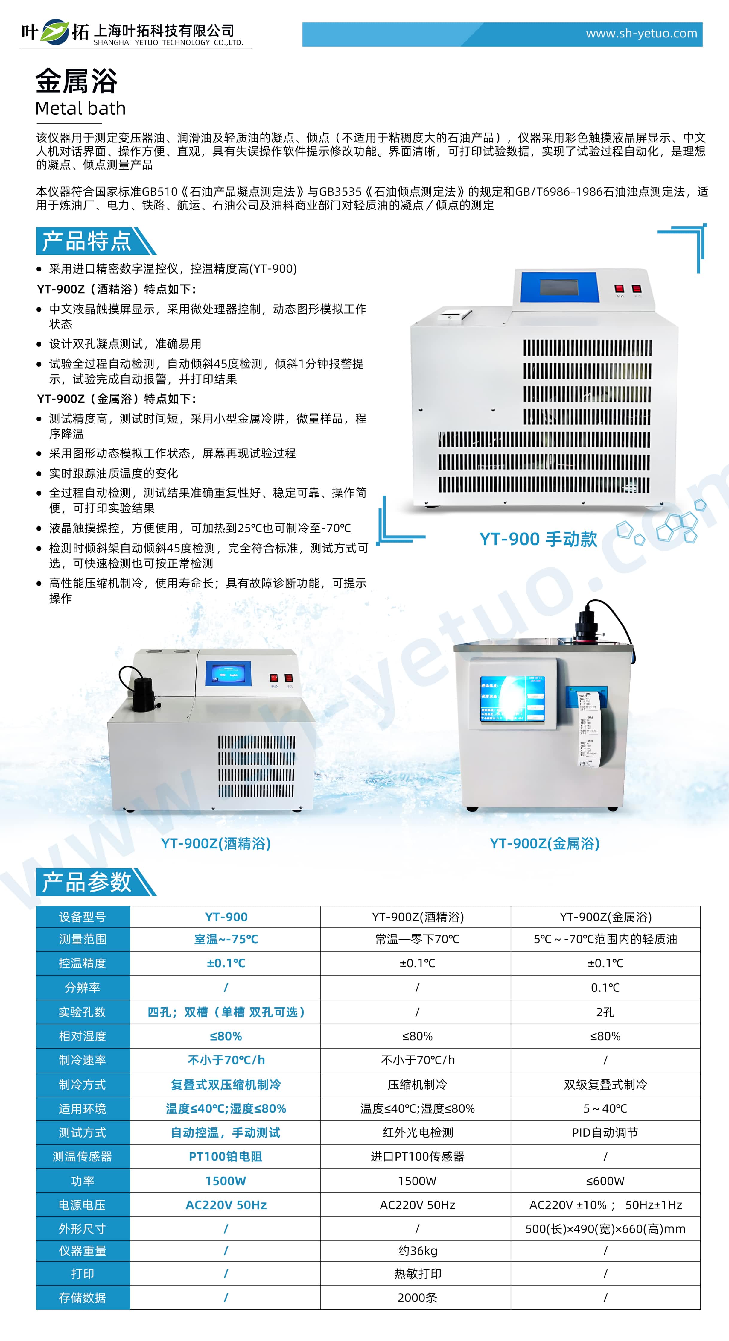 本儀器符合國家標準GB510《石油產品凝點測定法》與GB3535《石油傾點測定法》的規定和GB/T6986-1986石油濁點測定法,適用于煉油廠、電力、鐵路、航運、石油公司及油料商業部門對輕質油的凝點/傾點的測定