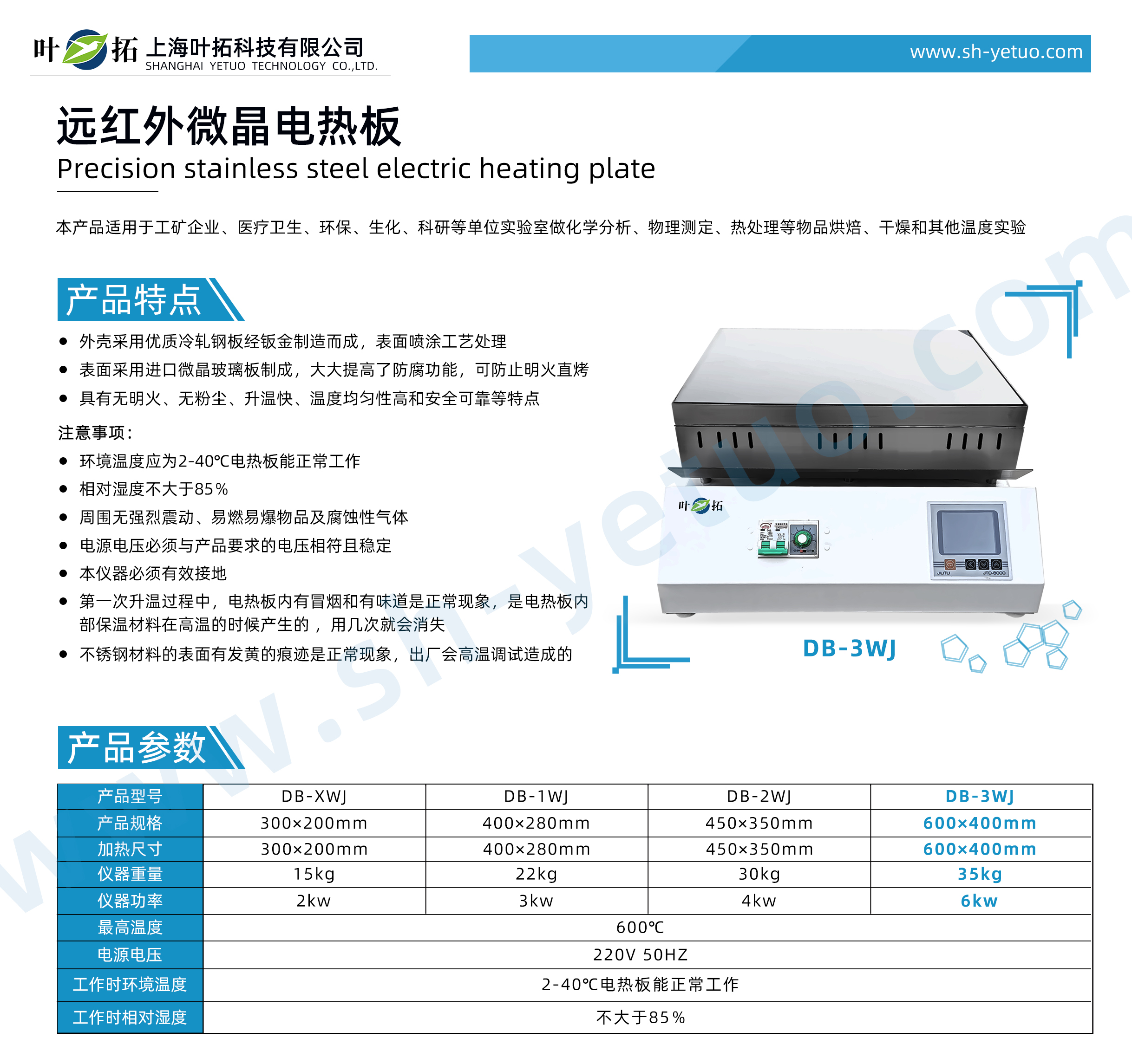 葉拓 DB-3WJ 遠紅外微晶電熱板詳細參數