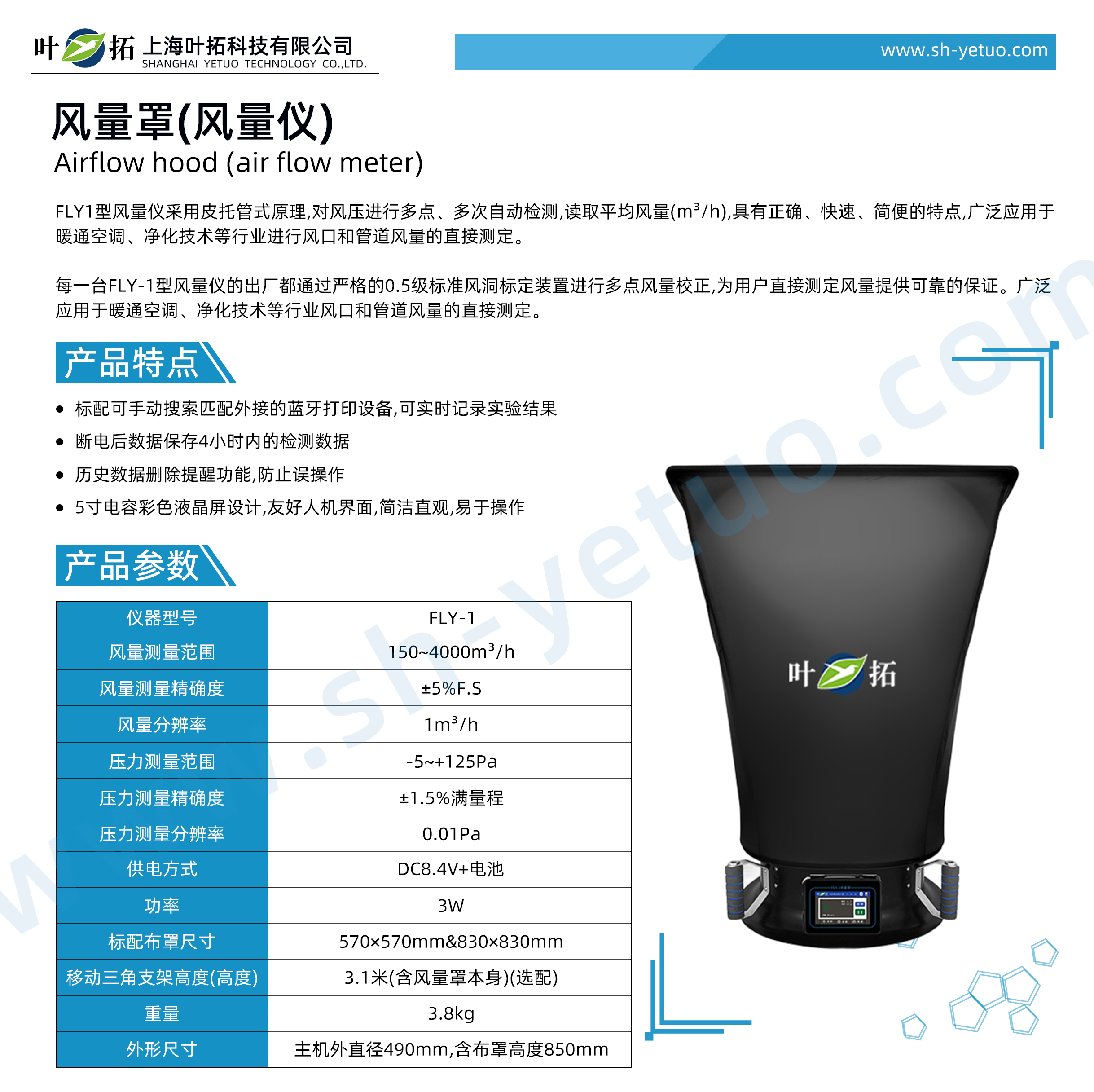 葉拓 FLY-1 風(fēng)量儀詳細(xì)參數(shù)