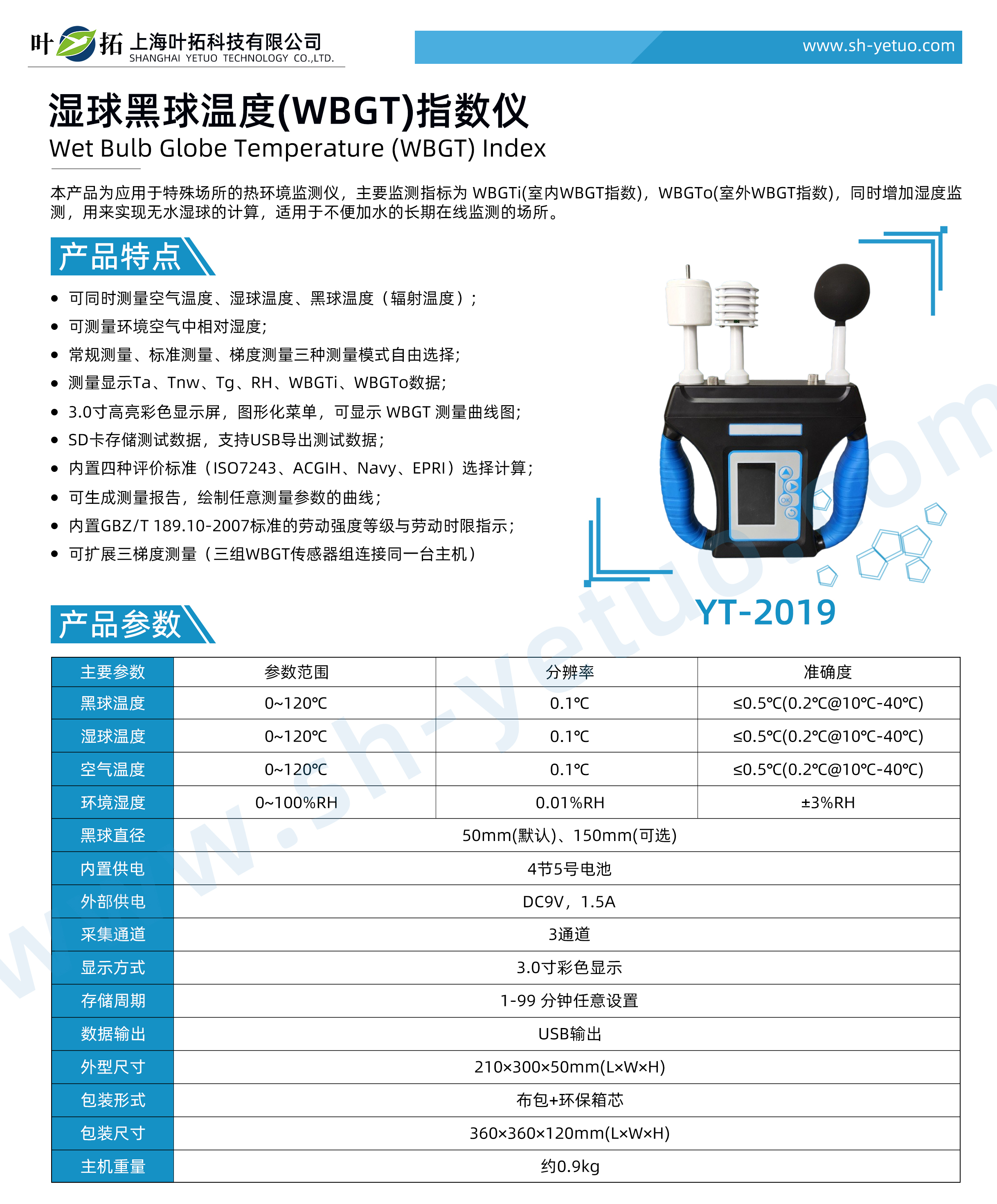 葉拓 YT-2019 濕球黑球溫度(WBGT)指數儀詳細參數